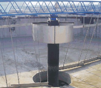 刮泥機,是一種排泥設備。組成部分:刮泥機由桁車、刮泥耙、撇渣板、驅動裝置和自控柜等到組成。分類:刮泥機主要有中心傳動刮泥機、周邊傳動刮泥機。中心傳動刮泥機主要由工作橋、傳動裝置、穩(wěn)流筒、傳動軸、刮臂、刮泥板等組成。該機設有橫跨池子的固定平臺,工作時其整機載荷都作用在工作橋中心;污水經(jīng)池中心穩(wěn)流筒均流到四周。隨著過流面積增大而流速降低,污水中的沉淀物沉淀于池底,刮泥機將沉淀的污泥刮集到中心集泥坑中,利用水壓將其從污泥管中排出。該機結構簡單,傳動平穩(wěn),動力消耗低,刮泥效果好,是一種理想的排泥設備;周邊傳動刮泥機用于城市污水處理廠、自來水廠以及工業(yè)廢水處理中輻流式圓形沉淀池和濃縮池中,排除沉降在池底的污泥和撇除池面的浮渣。應用領域:刮泥機主要應用于鋼鐵、冶金、礦山、水處理等行業(yè)。